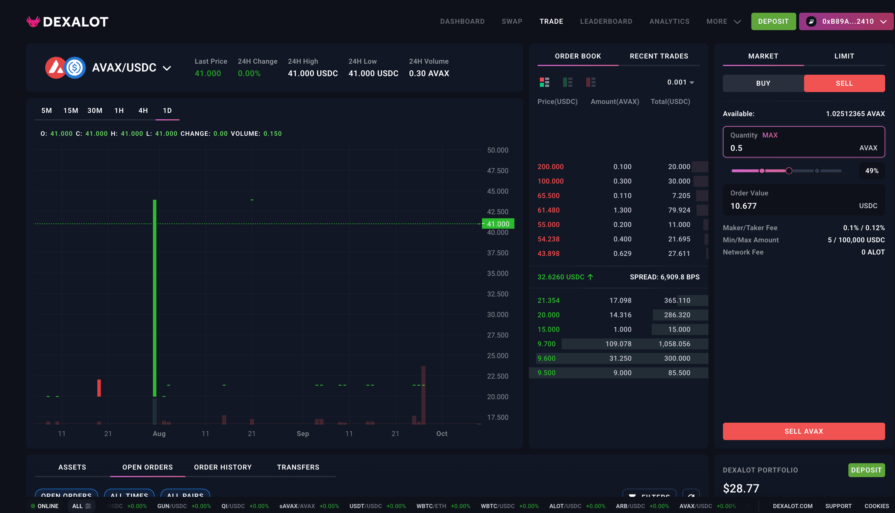 In this activity, we'll interact with our first Avalanche L1. The Dexalot Avalanche L1 aims to replicate the user experience of a centralized exchange (CEX) with greater decentralization and transparency. By using a Avalanche L1, Dexalot can offer cheaper transaction fees than other traditional decentralized exchanges while keeping the transparency that centralized exchanges lack.